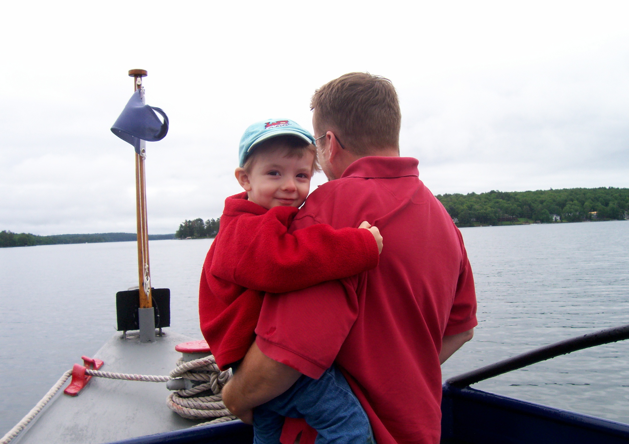 So we took a mini-break this weekend, drove up to New Hampshire to Newfound Lake, and then to Lake Winnipesaukee today, where Vincent got to take a big boat ride. “Big” is relative — we were supposed to go out on a REALLY big boat, but due to the crazy weather (and lack of customers) we ended up on a smaller tugboat-sized number. But big enough for me! My boys love boats.