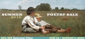 And, AND, Pitt Poetry Press — PITT POETRY PRESS! — has a summer sale of its own: 50% off select titles. Their list is enviable, and they’re practically giving the books away!