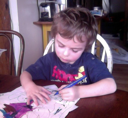My children are ever so much more productively writing than I am. Vincent’s discovering the discoveries and challenges of reading and writing, and Aidan is doggedly working on his own mysterious pages.