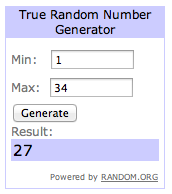 Thanks so very much to everyone who threw his/her name in the hat! I’m late wrapping things up, as usual, but at last I got myself over to Random.org and let it do its thing. And so, the lucky winners are: